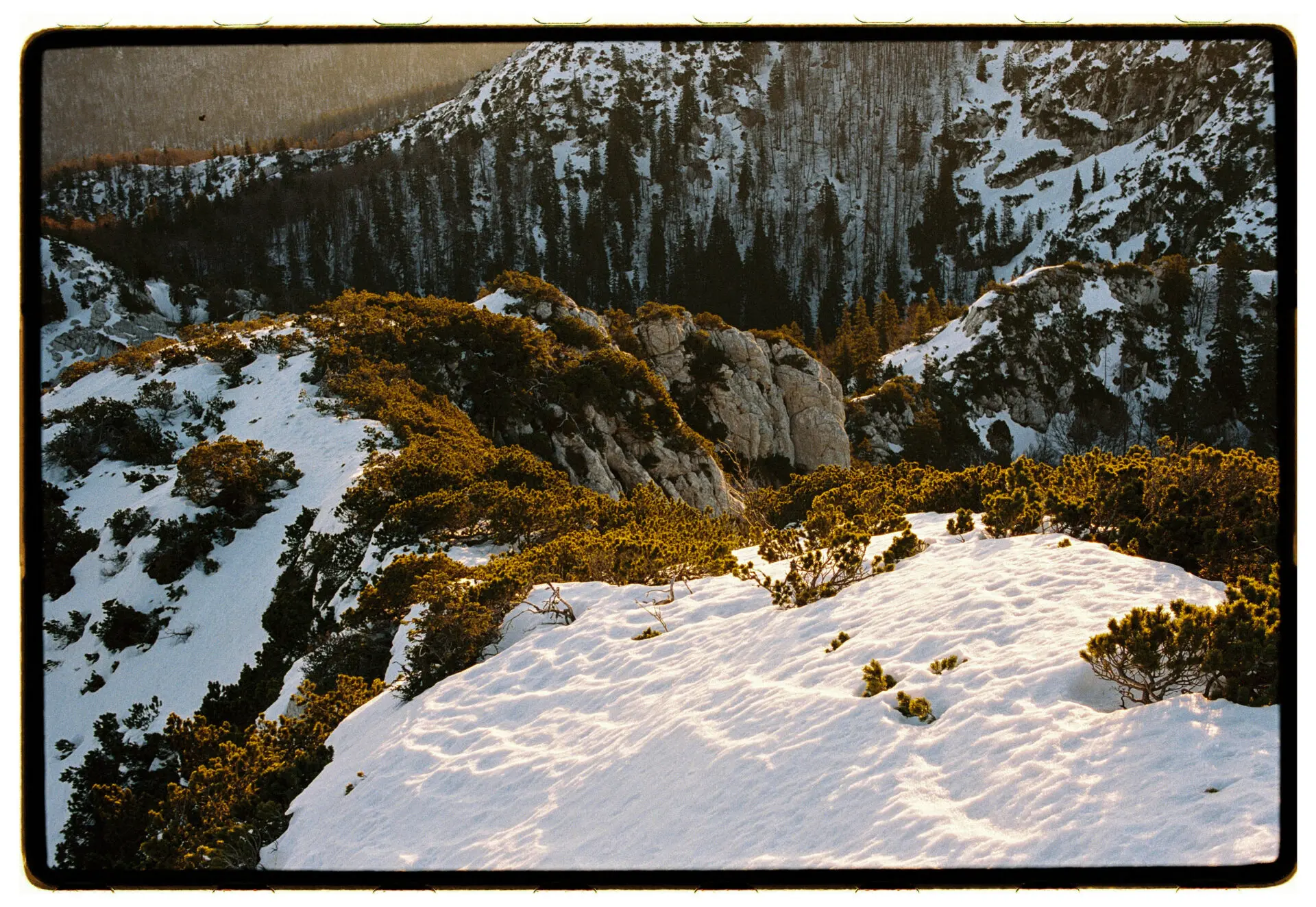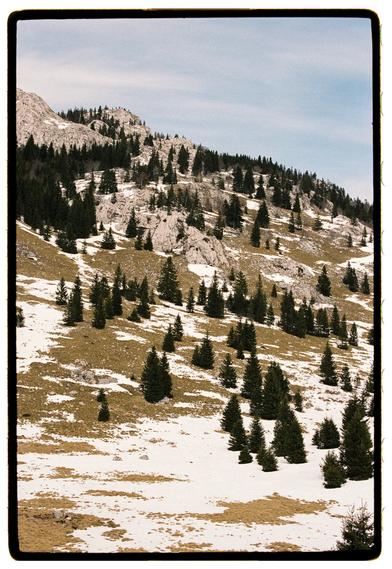 Every day I crossed fresh tracks from a bear and her cubs. Always close, never visible. The highlight wildlife encounter came in the Lom valley, where I sat on a meadow for lunch and watched a group of chamois grazing about 50 meters away. Completely calm and undisturbed, a rare and privileged moment.